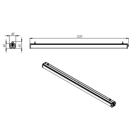 | Габаритные размеры светильника, мм | 80х1200х60 |