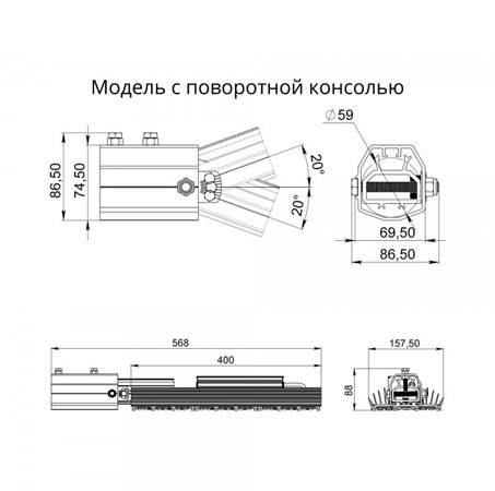 Габаритные размеры светильника, мм 440 х 158 х 103