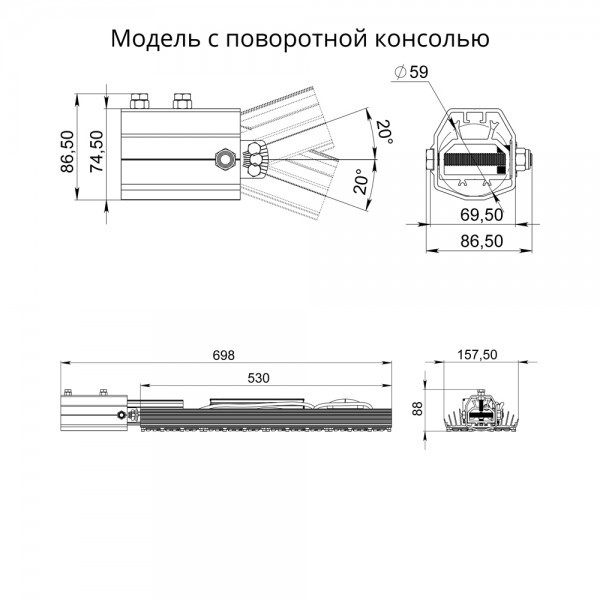 Габаритные размеры светильника, мм 570 х 158 х 103